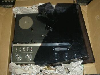 Das Gerät wurde in zwei ineinander passende Kartons verpackt. Leider hat man die seltene Plastikhaube nicht vom Gerät getrennt verpackt. Der Karton sowie der Umkarton hatten ca. die gleiche Höhe wie die Revox mit der Plastikabdeckung.
